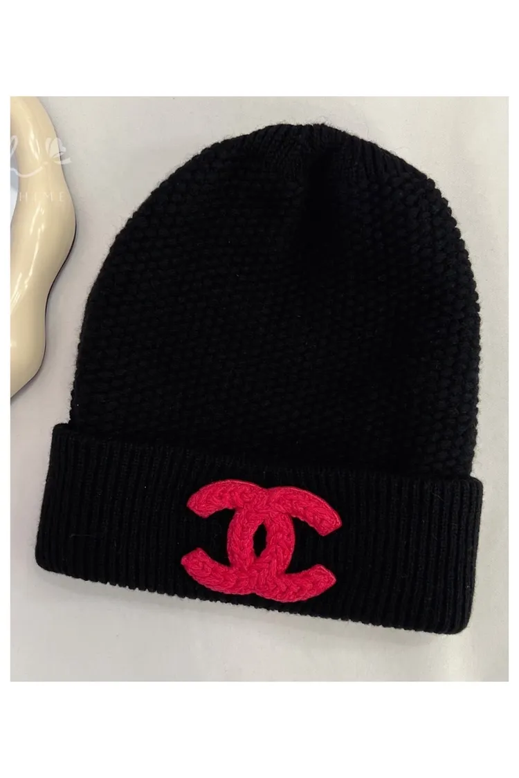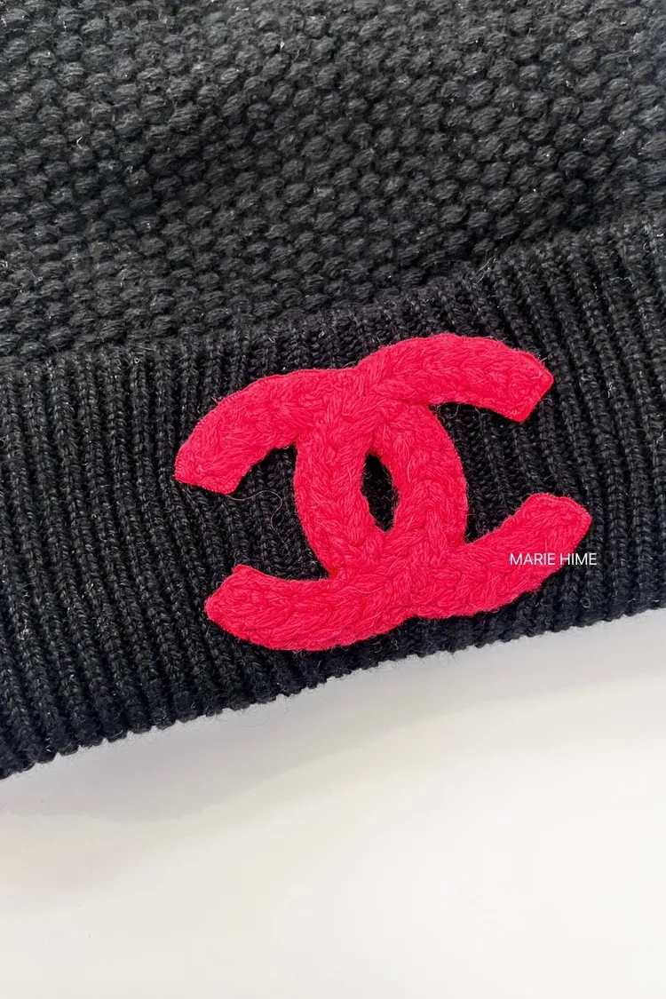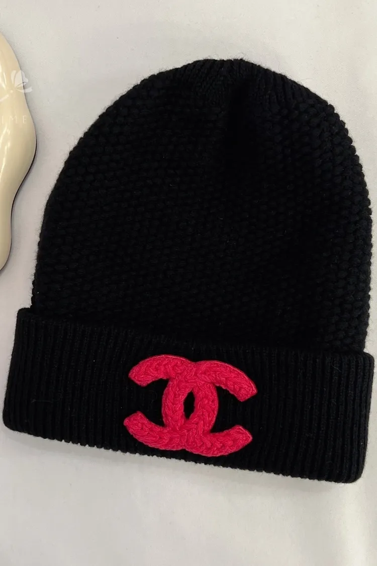 現貨//CHANEL 素色底編織雙C 黑色 毛帽