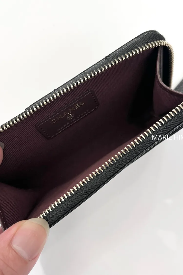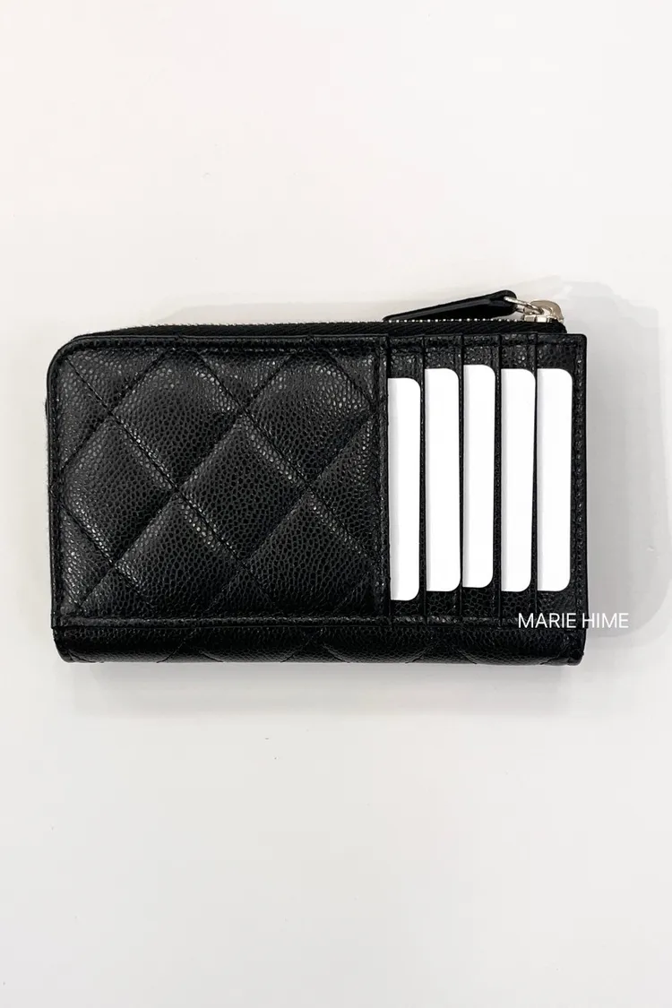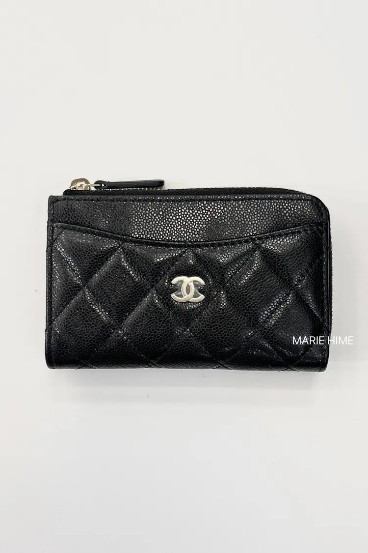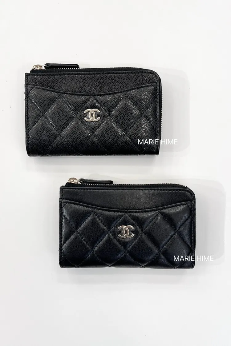 預購//COCO L型 拉鍊零錢卡包 荔枝皮黑色金扣