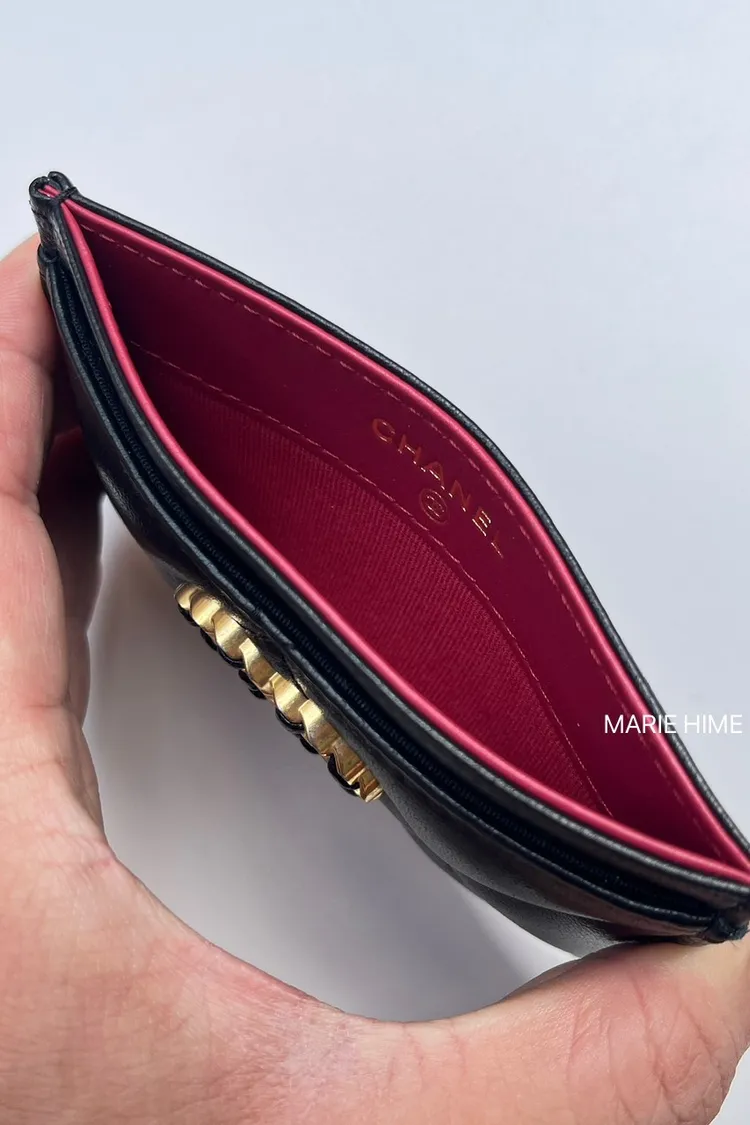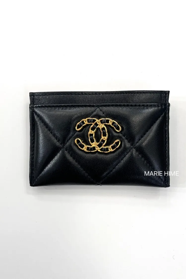 現貨//CHANEL 19薄卡夾 羊皮黑色金釦