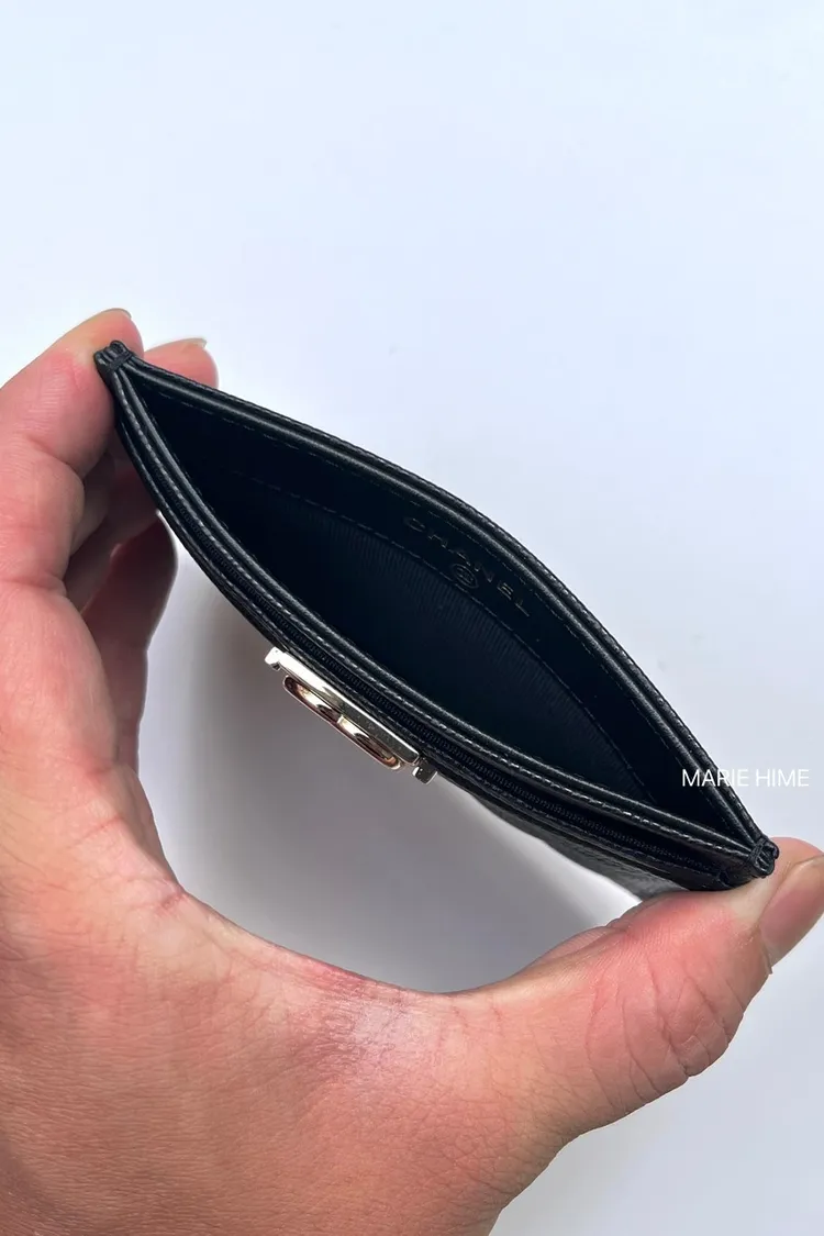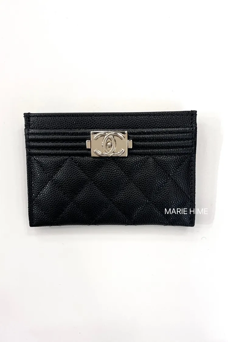 現貨//CHANEL BOY薄卡夾 荔枝皮黑色淡金釦