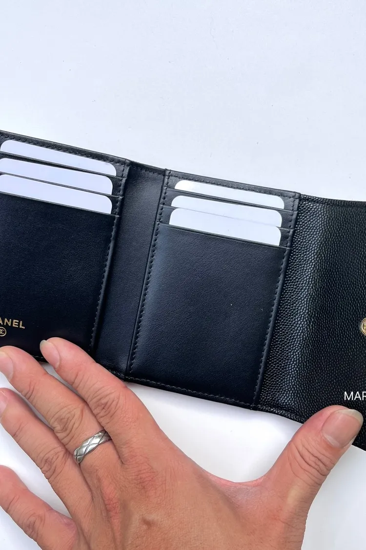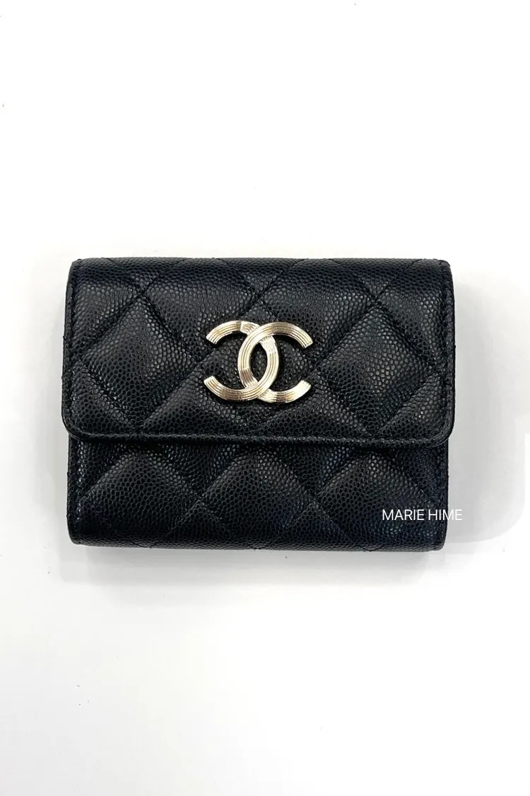 現貨//CHANEL 23C三折卡夾賽車絲巾 荔枝皮黑色金釦