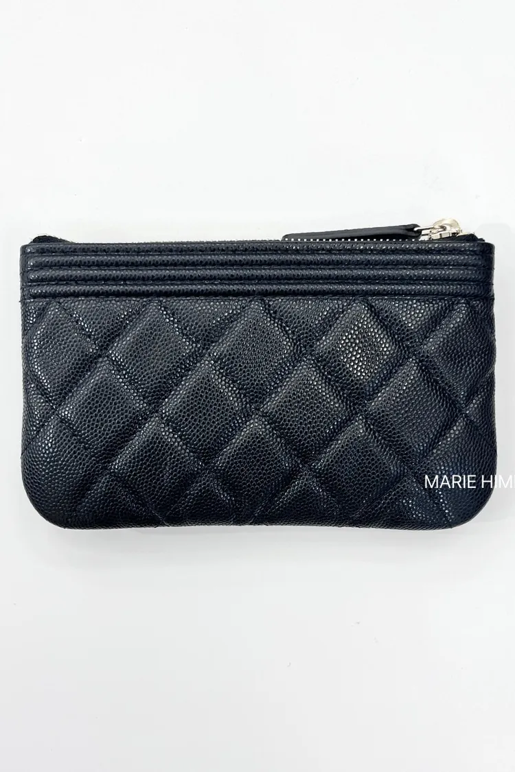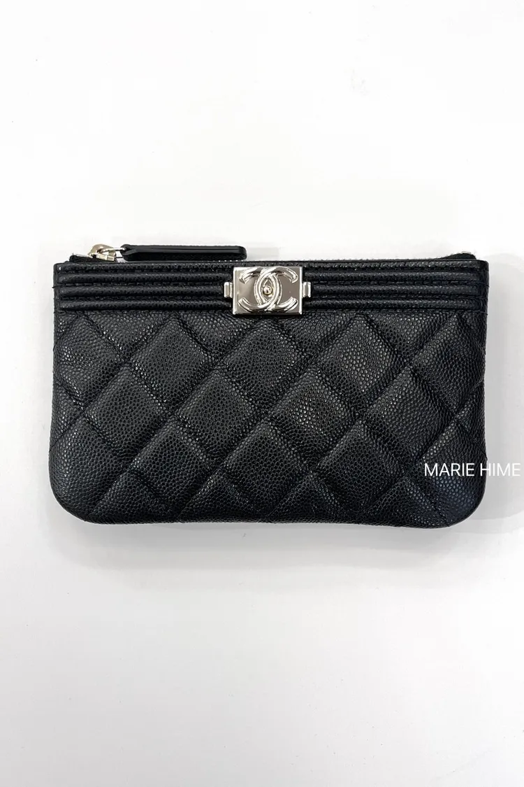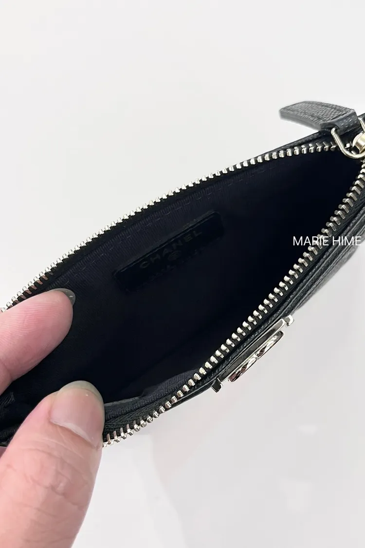 現貨//CHANEL BOY一字拉鍊錢包 荔枝皮黑色淡金釦