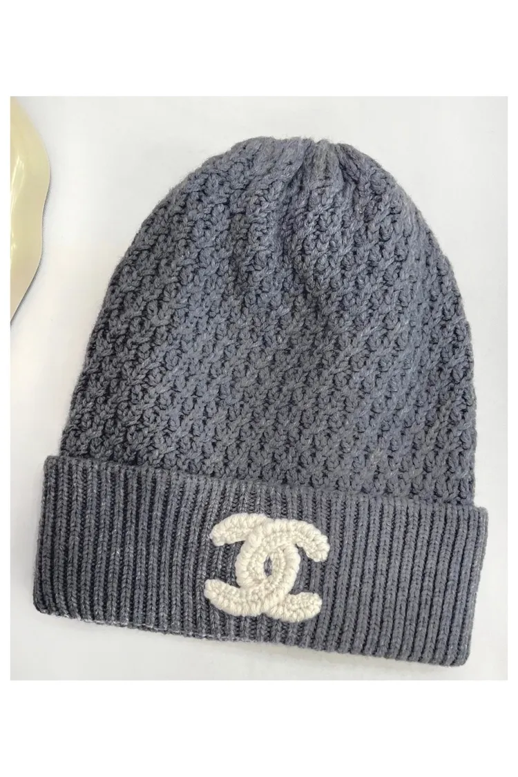 現貨//CHANEL 23B 大格紋直線底雙c 灰色毛帽