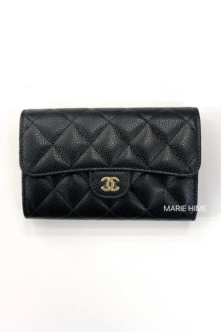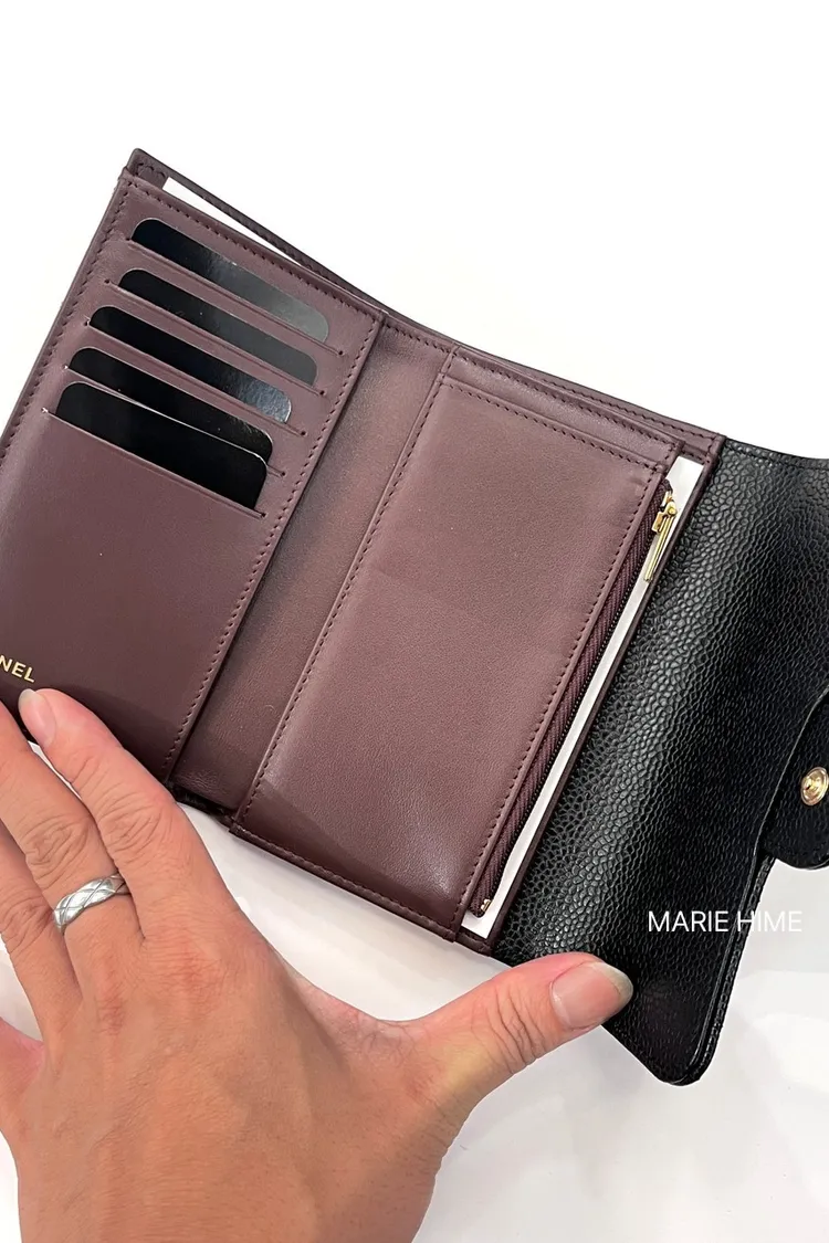 現貨//CHANEL COCO 三折中夾 荔枝皮黑色金扣