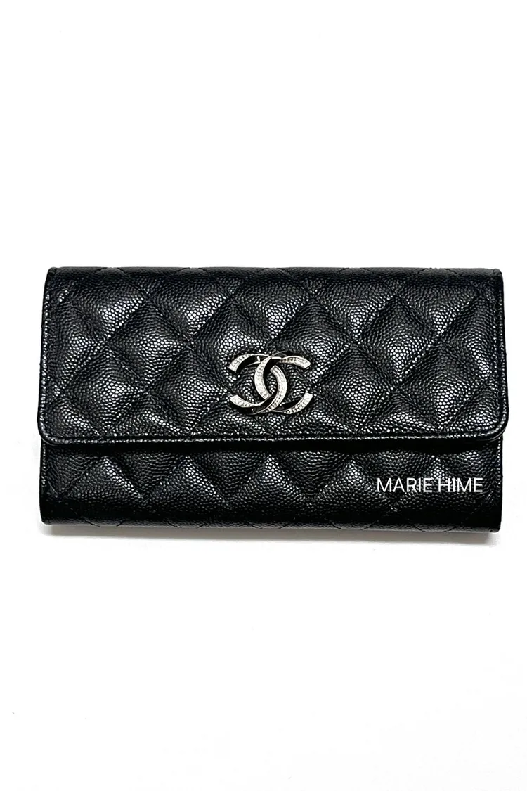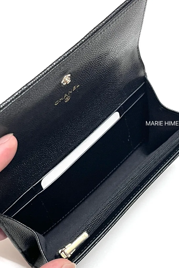 現貨//CHANEL 23S信封單層中夾 荔枝皮黑色金扣