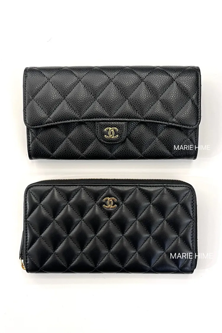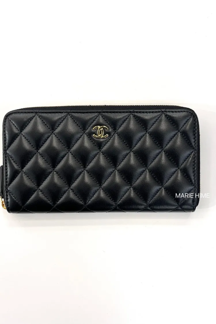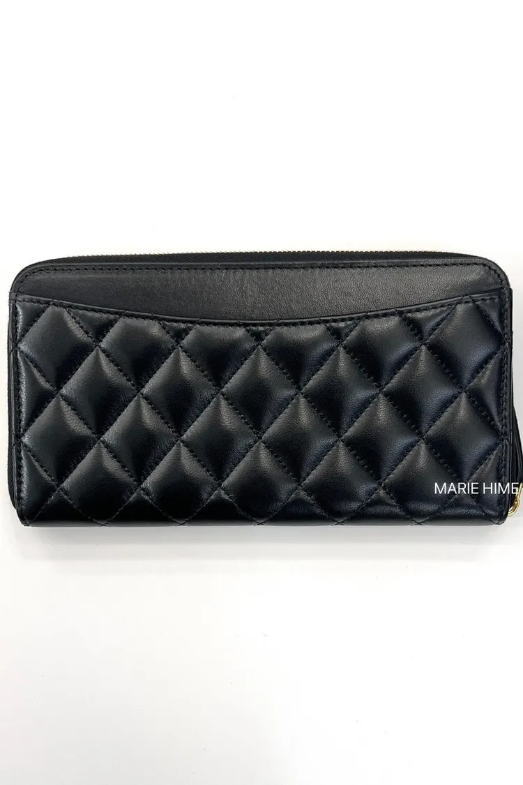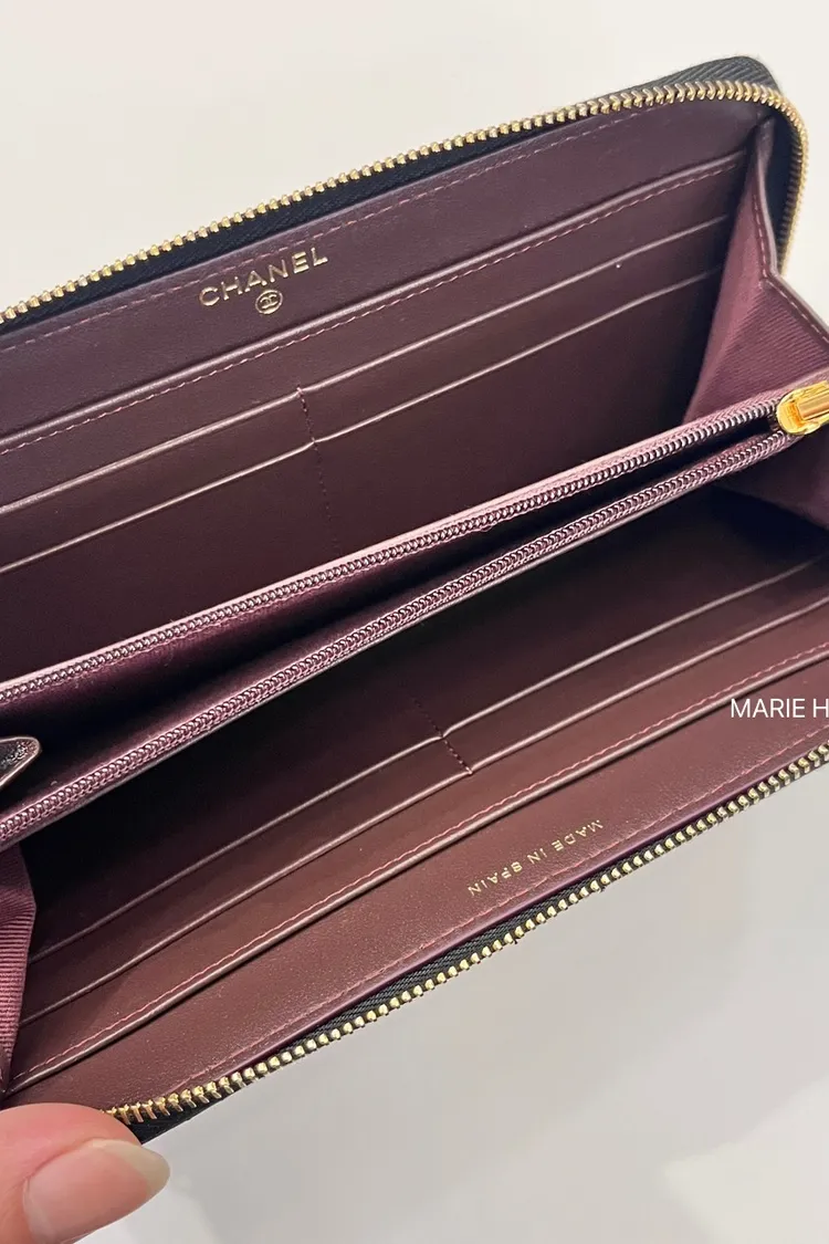 現貨//CHANEL COCO 拉鍊長夾 羊皮黑色金釦