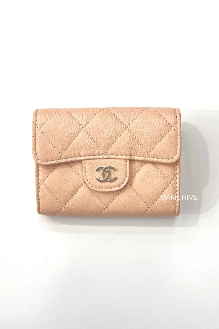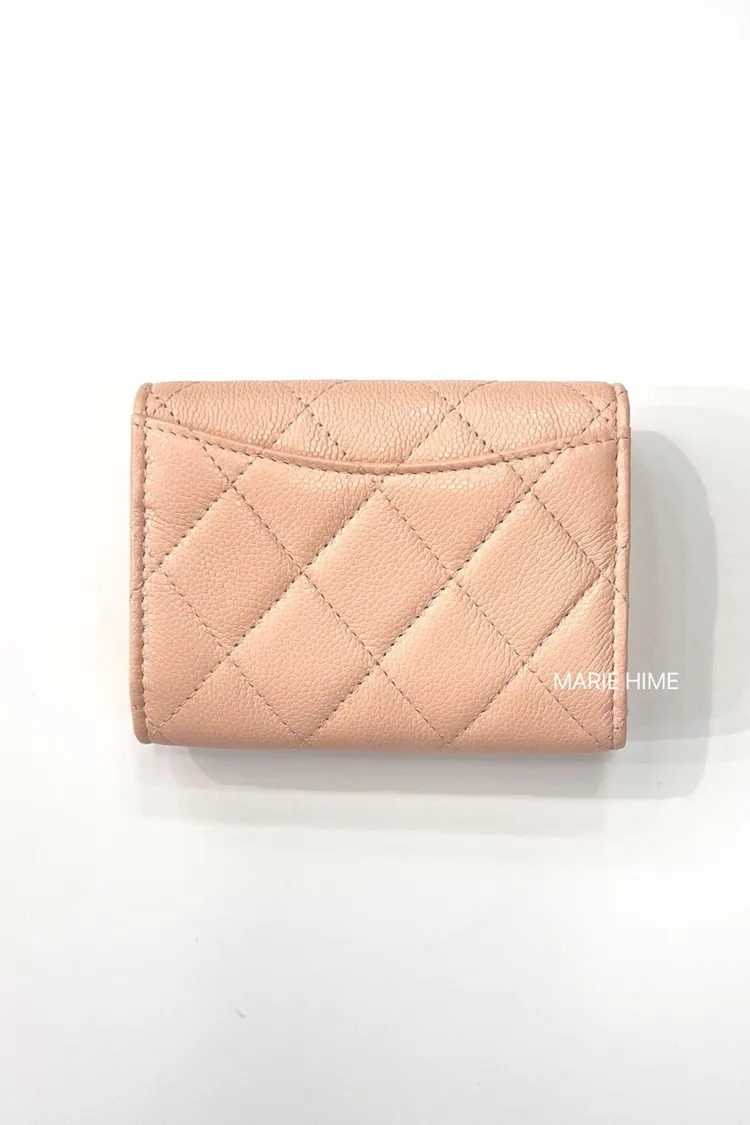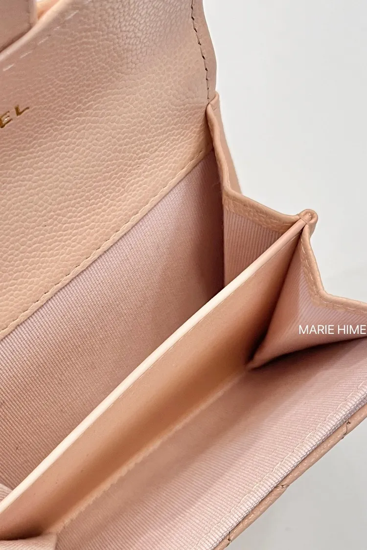 現貨//CHANEL COCO雙層錢包 粉膚色荔枝皮金釦