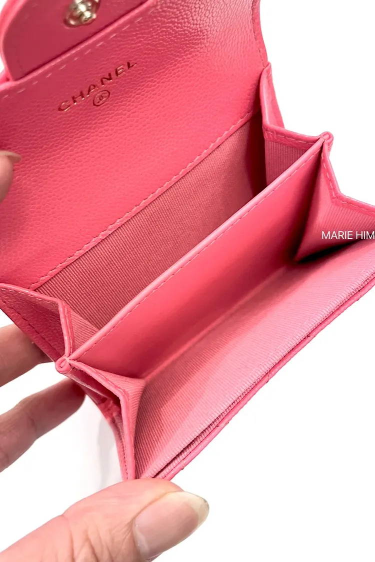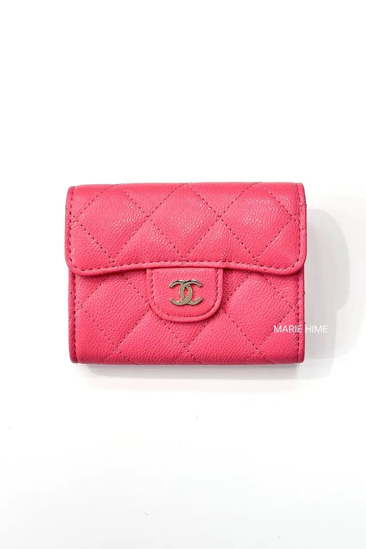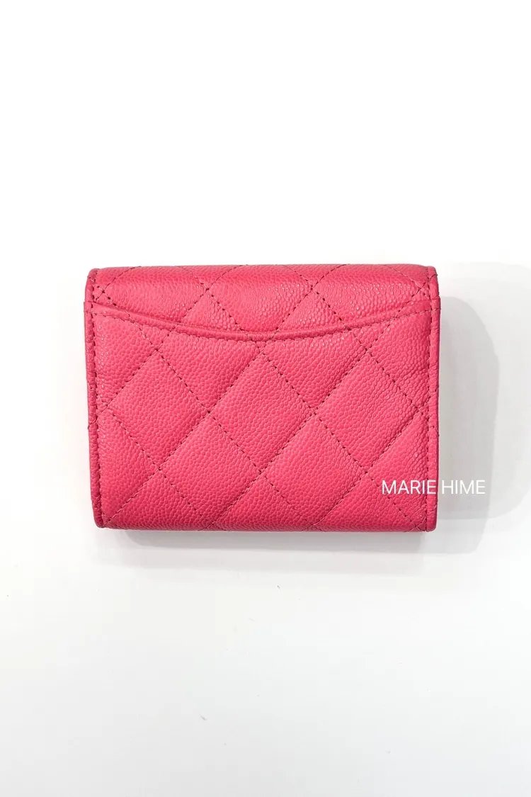 現貨//CHANEL COCO雙層錢包 洋紅色荔枝皮金釦