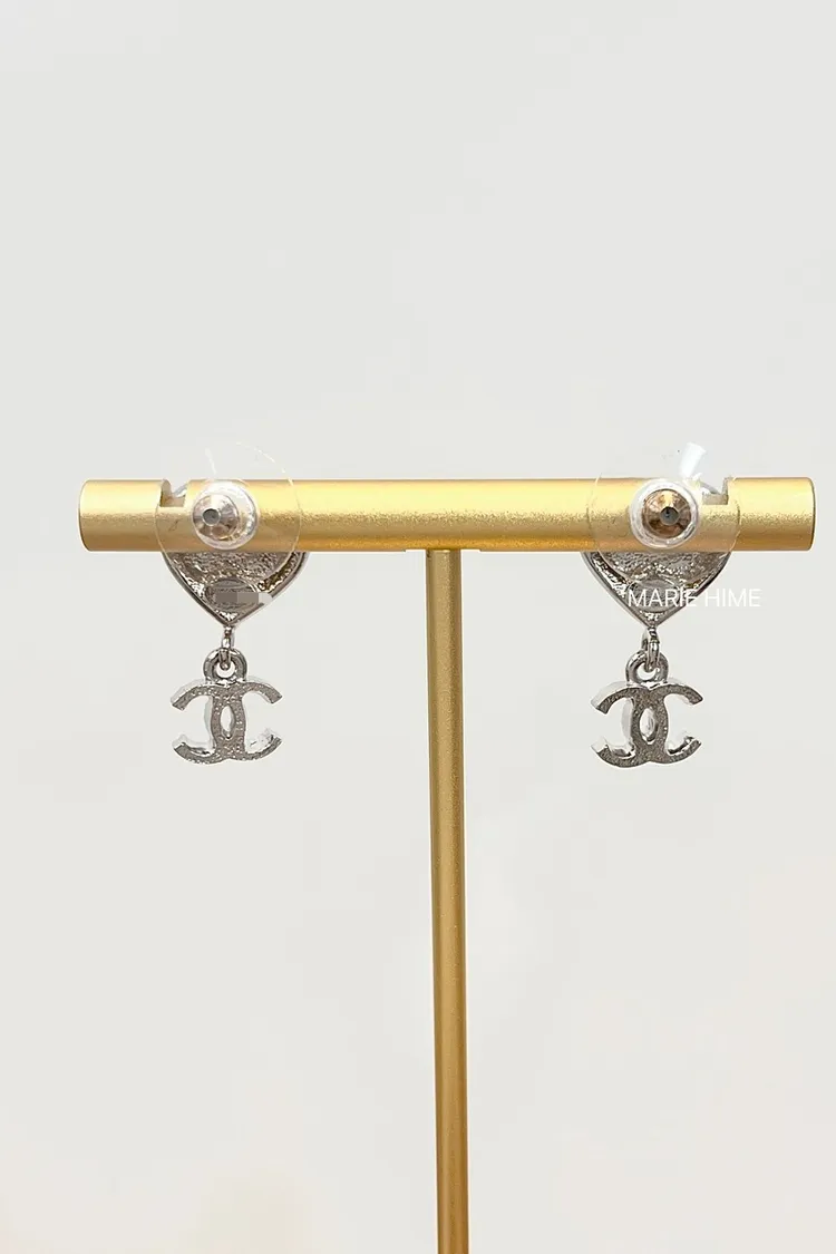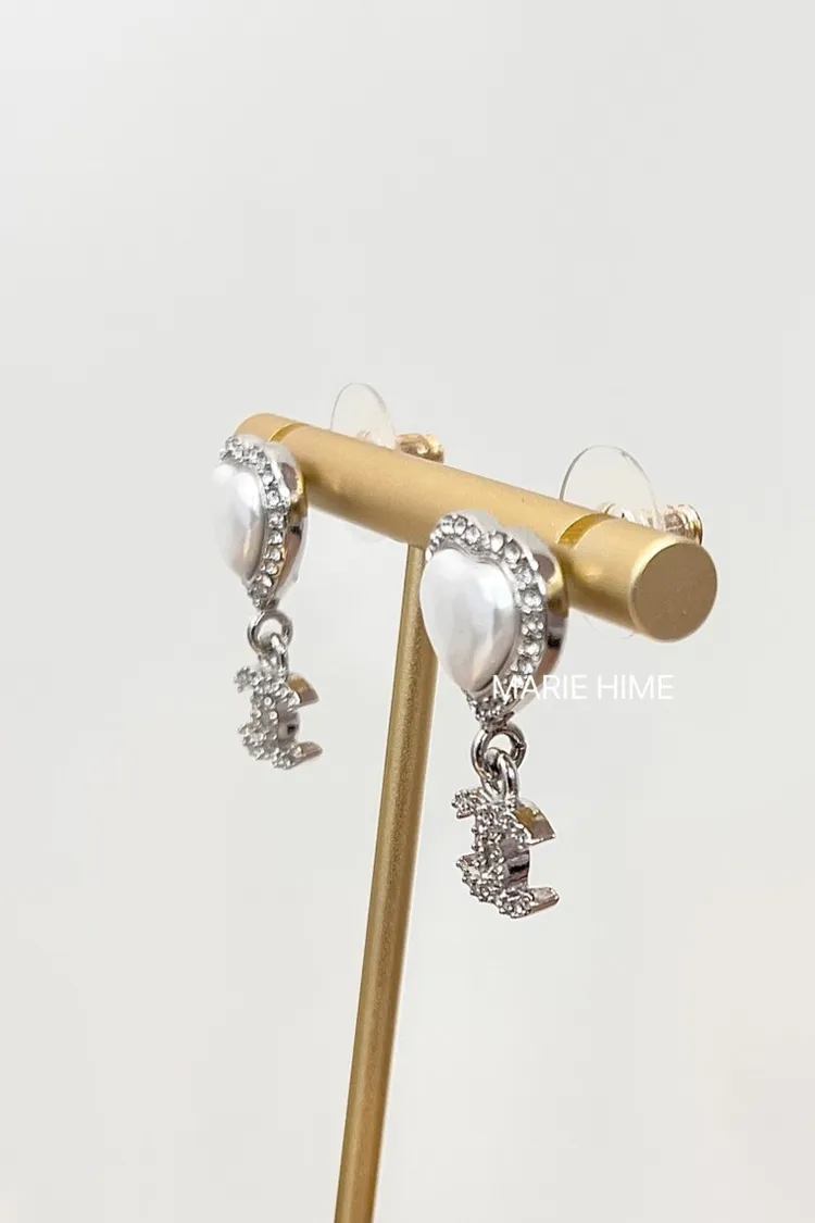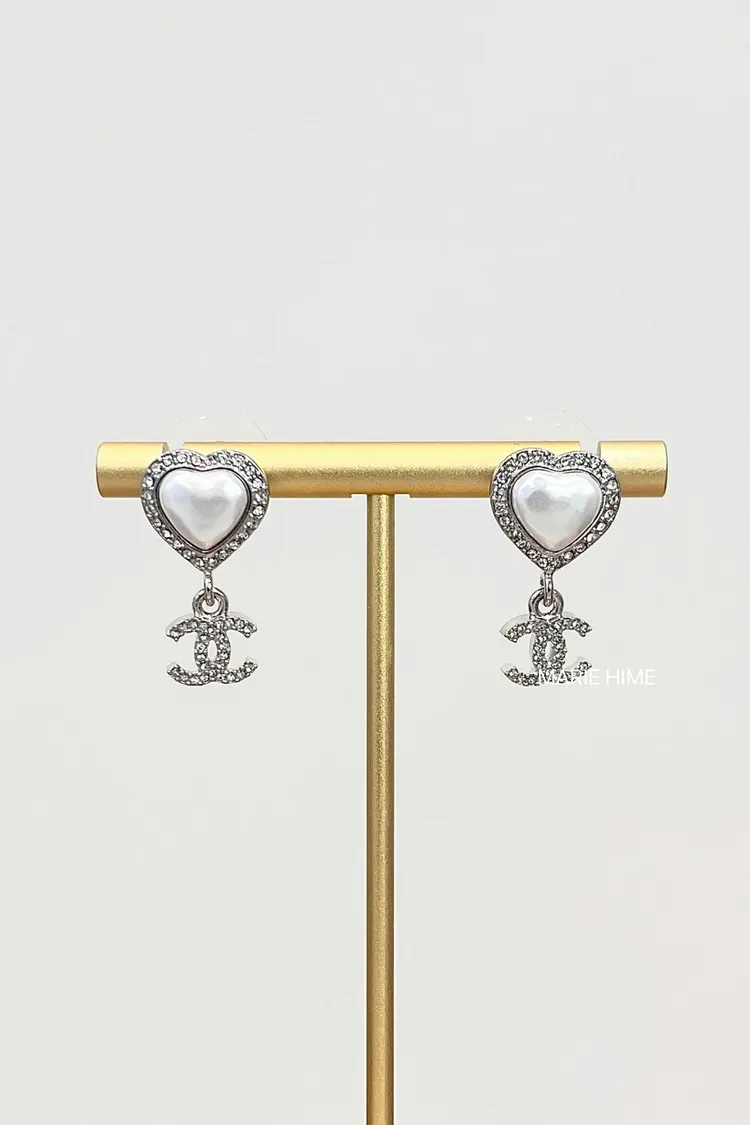 現貨//CHANEL 珍珠愛心垂墜雙C 耳針 ABB506