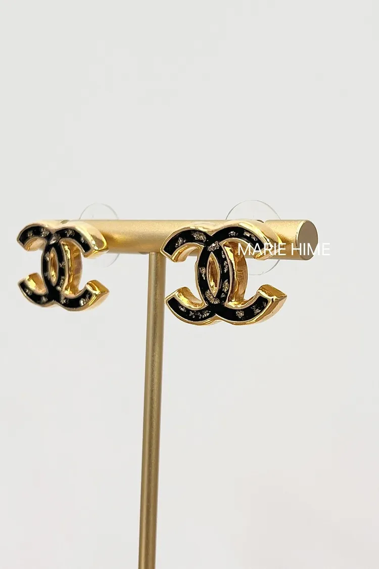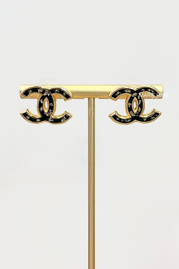 現貨//CHANEL 金箔雙C 耳針 Aba138