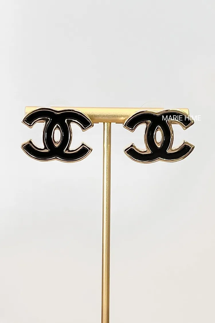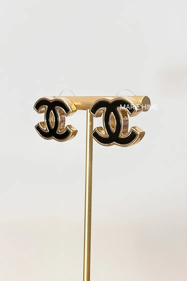 現貨//CHANEL 巧克力琺瑯大雙C 耳針 ABB072