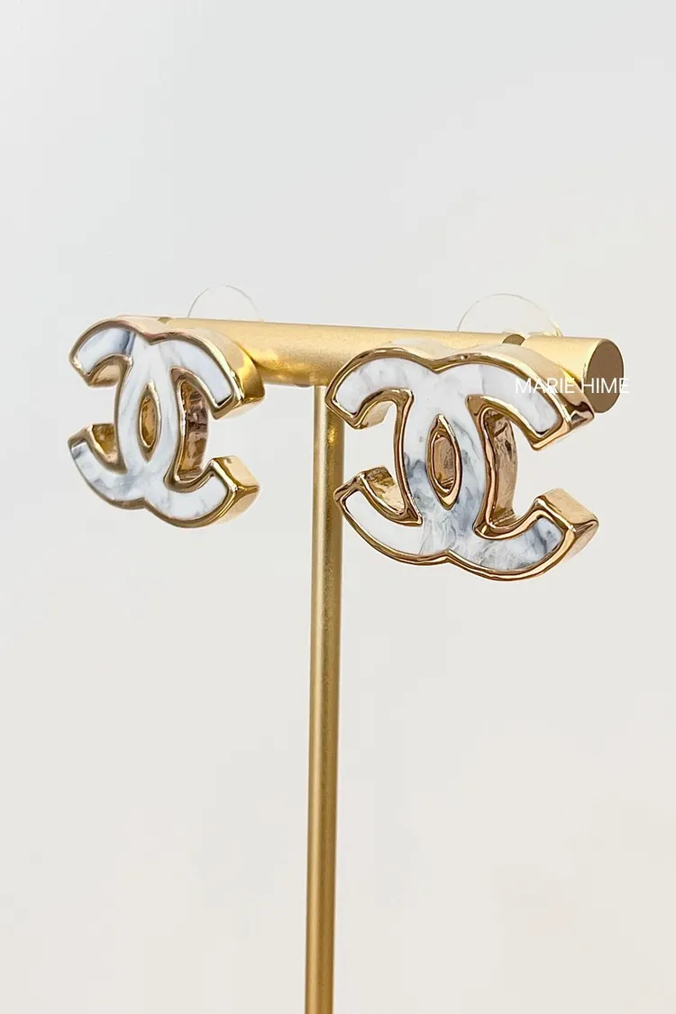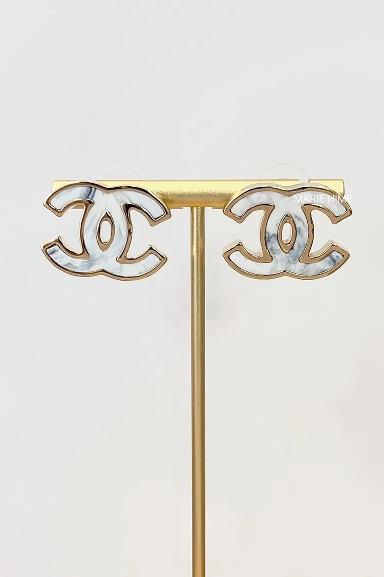 現貨//CHANEL 大理石暈染雙C 耳針 ABB072