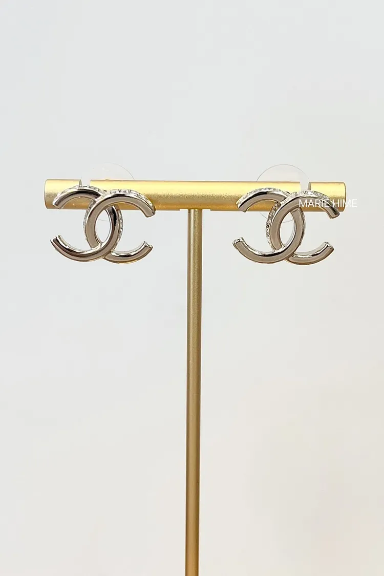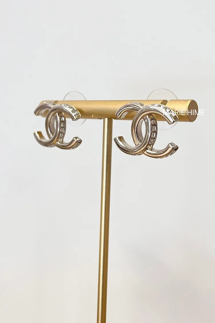 現貨//CHANEL 側邊崁鑽雙C 耳針 ABB798