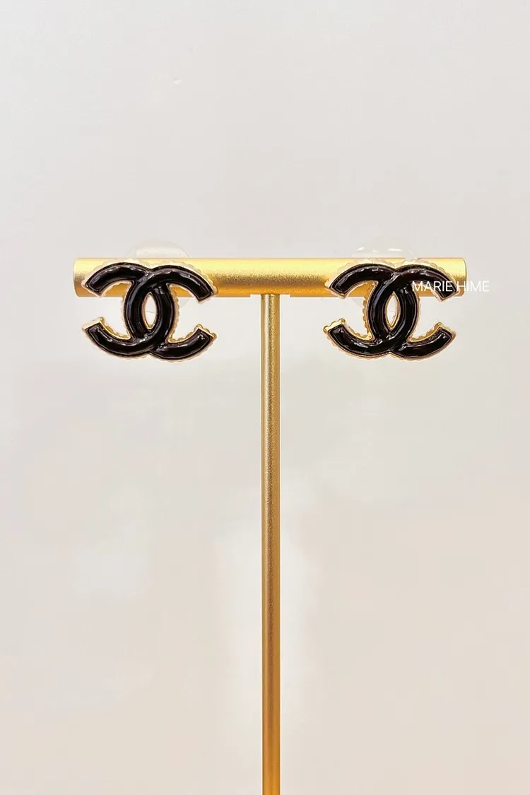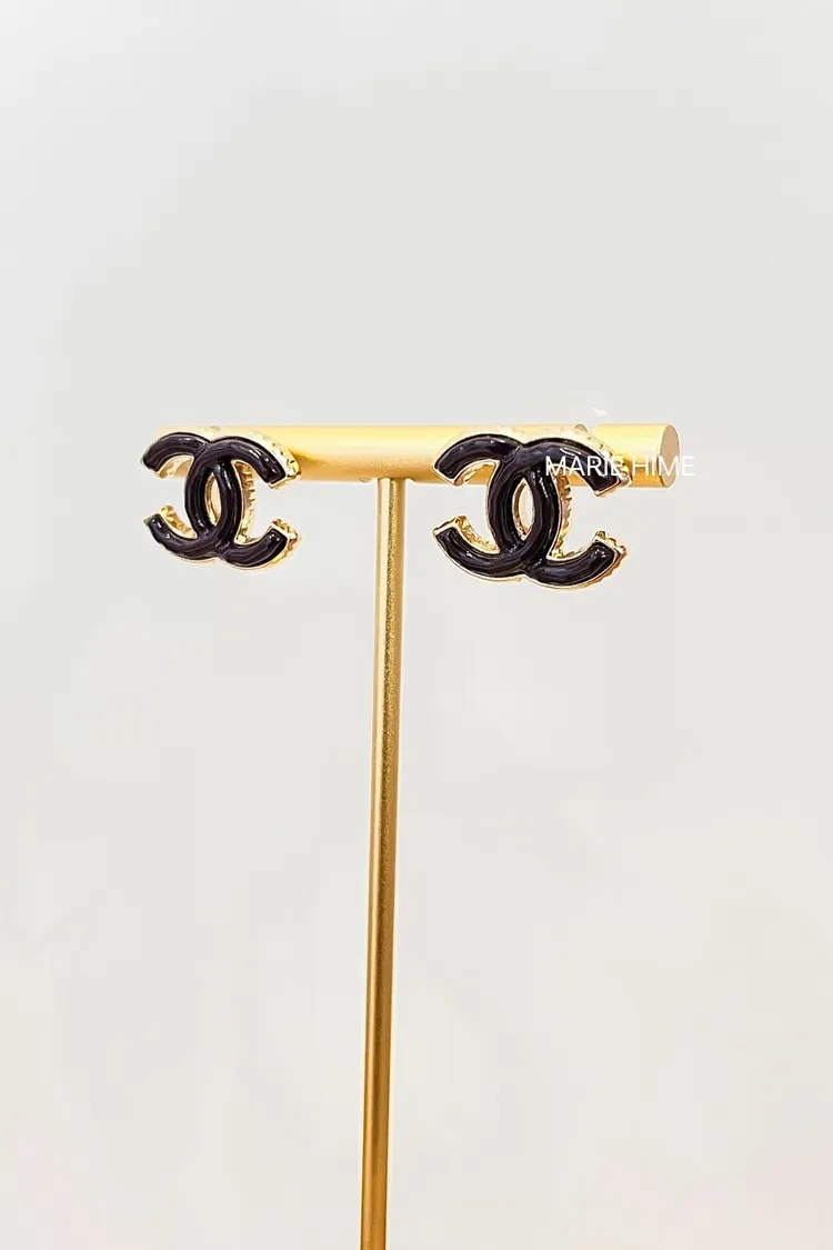 現貨//CHANEL 巧克力琺瑯立體雙C 耳針 ABB004