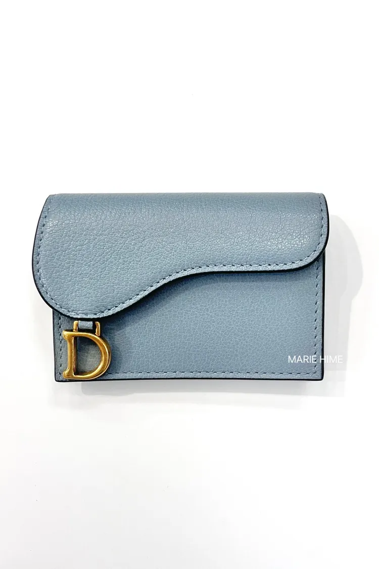 現貨//DIOR 馬鞍山羊皮厚卡夾 雲藍色