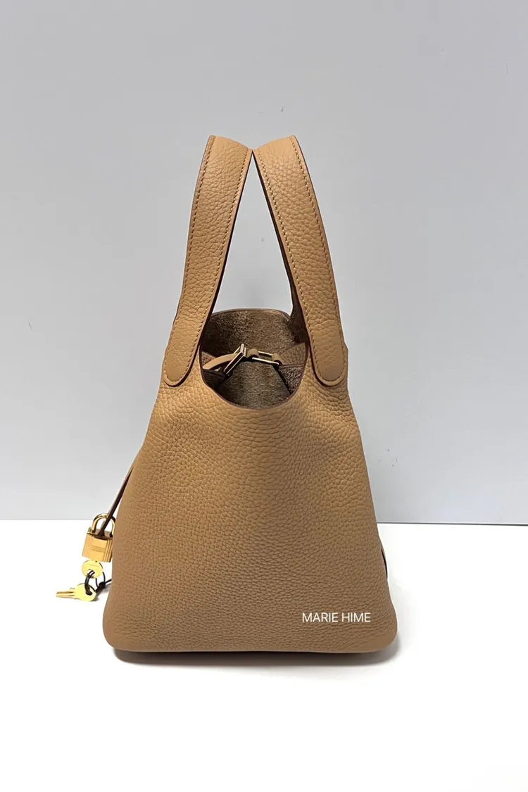 現貨//HERMES 18菜籃子 餅乾色金釦