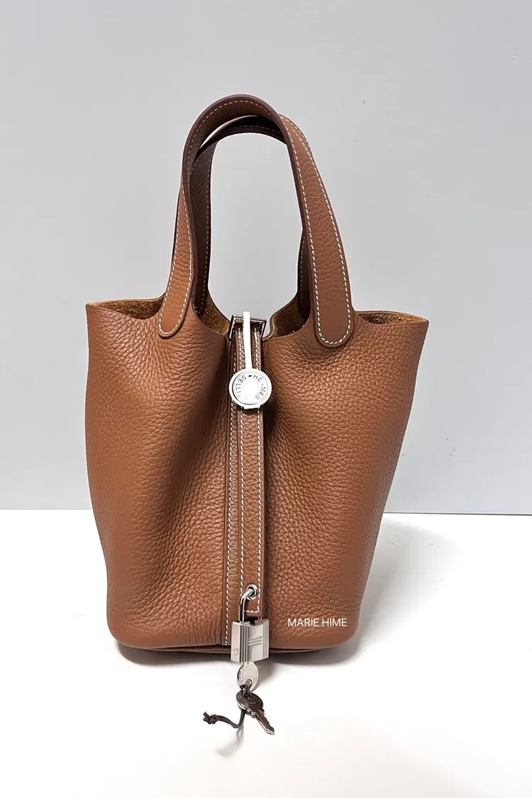 現貨//HERMES 18菜籃子 金棕色銀釦