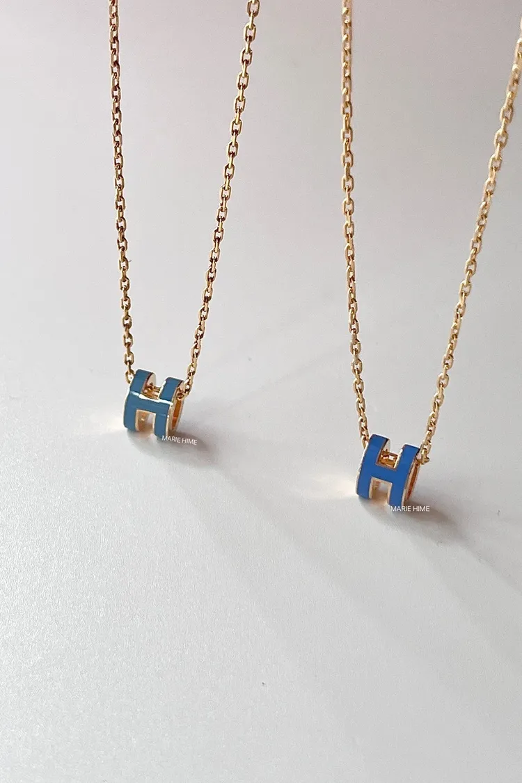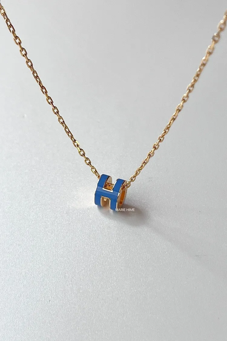 現貨//HERMES MINI POP H 項鍊 飽和藍金