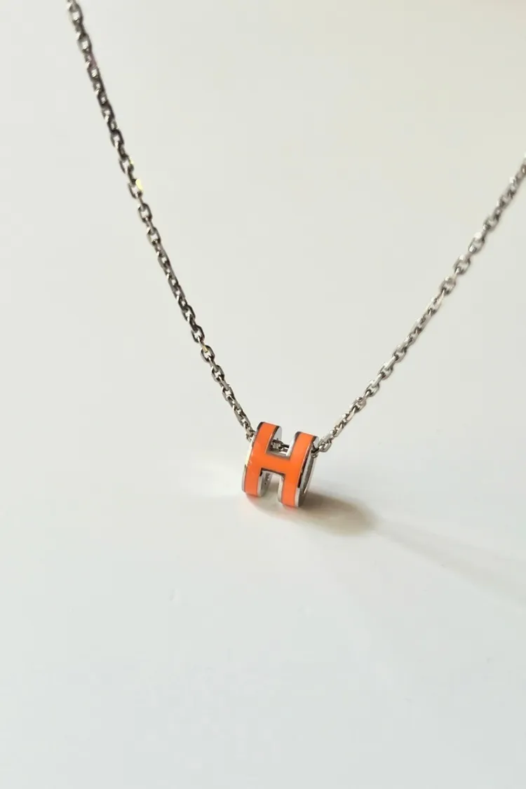 現貨//HERMES MINI POP H 項鍊 愛馬仕橘色銀鍊