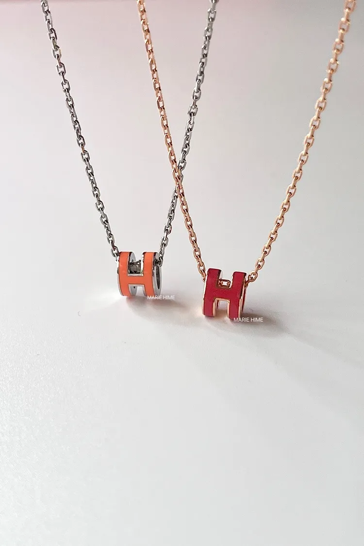 現貨//HERMES MINI POP H 項鍊 橘紅玫瑰金