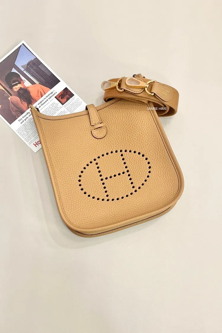 現貨//HERMES MINI EVELYNE 餅乾色金釦