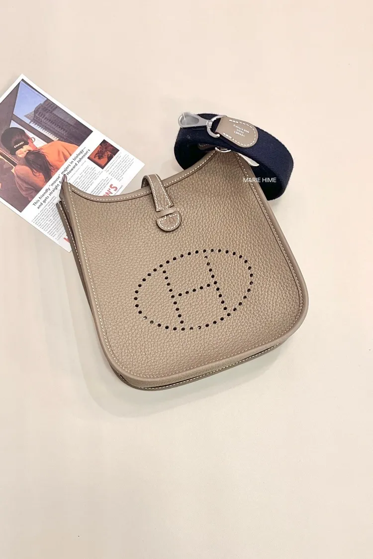 現貨//HERMES MINI EVELYNE 大象灰銀釦