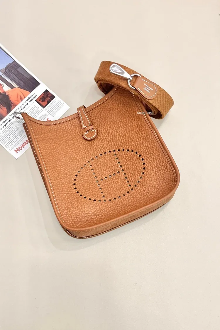 現貨//HERMES MINI EVELYNE 金棕色金釦