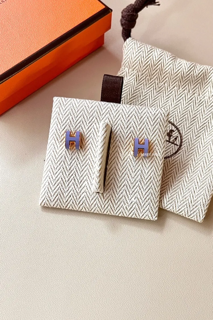 現貨//HERMES MINI POP H 耳環 薰衣草紫玫瑰金